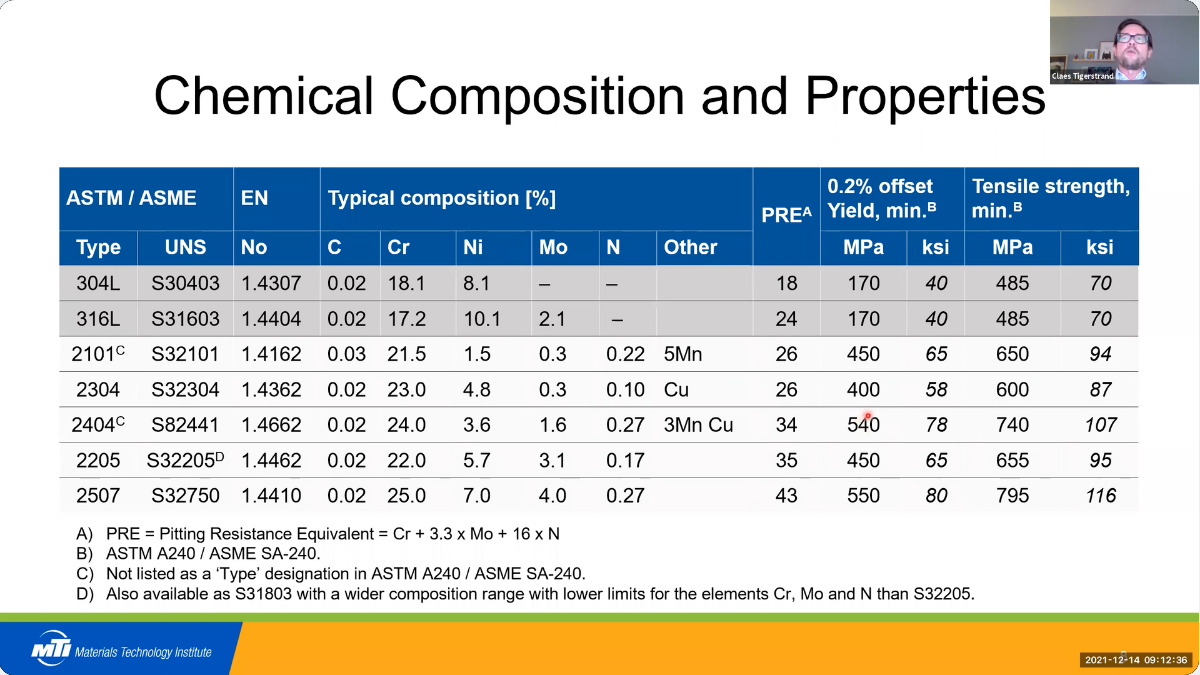 This webinar will elaborate on the advantages of selecting duplex stainless steels for large storage tanks or pressure vessels compared to both the more commonly used austenitic stainless steels, type 304 and 316, and carbon steels. The great combination of high mechanical strength and durability can potentially provide a more economical design. This can be realized by enhancing the structural efficiency which reduces the material consumption and shortens the fabrication time when thinner plates are assembled and no protective coatings are applied. Moreover, higher durability reduces the need for costly maintenance and repair work which facilitates a more reliable and long-lasting operation. Nevertheless, there are some considerations associated with the use of duplex stainless steels such as the more limited temperature range and the importance of being aware of how important material properties are affected by the different steps of the fabrication process. Thus, both opportunities and challenges will be addressed.