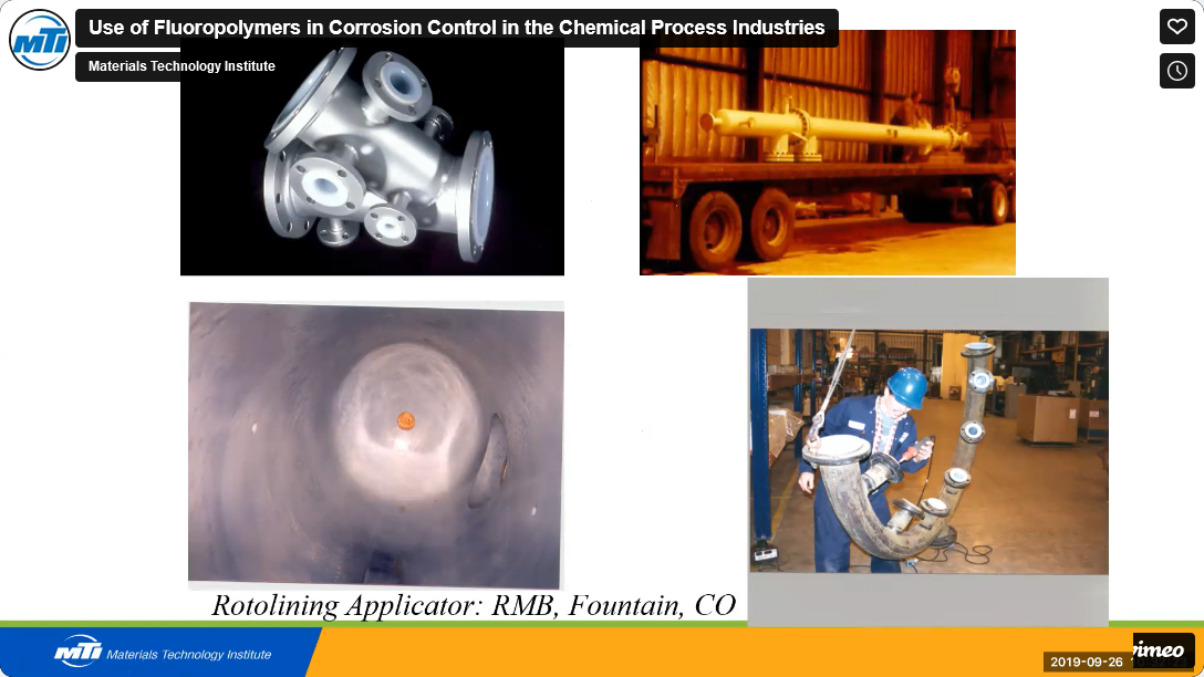 This webinar includes an overview of the use of fluoropolymers for corrosion mitigation with strong focus on barrier applications in vessels, piping, valves, hoses and expansion joints. Various types of fluoropolymers will be explained with product forms and fabrication techniques. This will be followed by a discussion of quality assurance, in-service inspection, failure analysis and fitness for service.