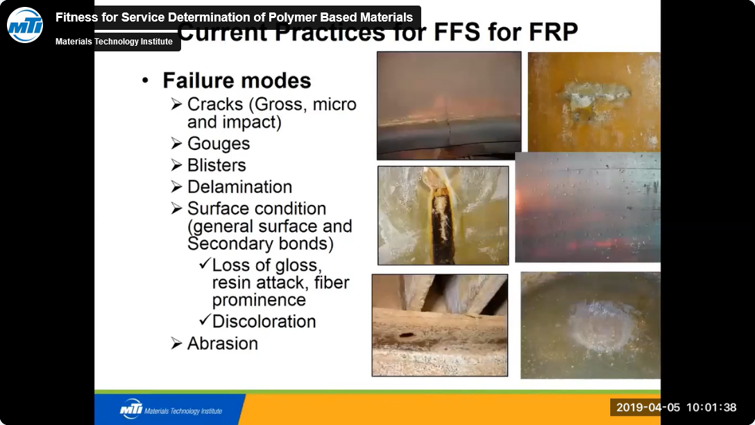 This webinar includes the basic concepts of Fitness for Service and how they are applied to polymer based materials. The concepts are illustrated by a few case histories.