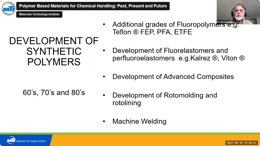 Polymer-based materials have been used since wooden vats were found to be corrosion resistant for pigment and dye manufacturing and properties of vulcanized rubber were discovered in 1832. Many materials have been invented since that time, and these materials are now commonly used for applications ranging from corrosion resistance to product purity. This presentation traces the evolution of polymer-based materials leading to the current state of the art. It reviews the challenges they face in the future and how the industry is responding to the critical issues related to accelerated testing for compatibility, nondestructive and non-intrusive testing for condition assessment and fitness for service evaluation.