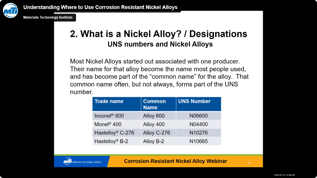 - Learn what MTI and other reference materials are of value in selecting nickel alloys